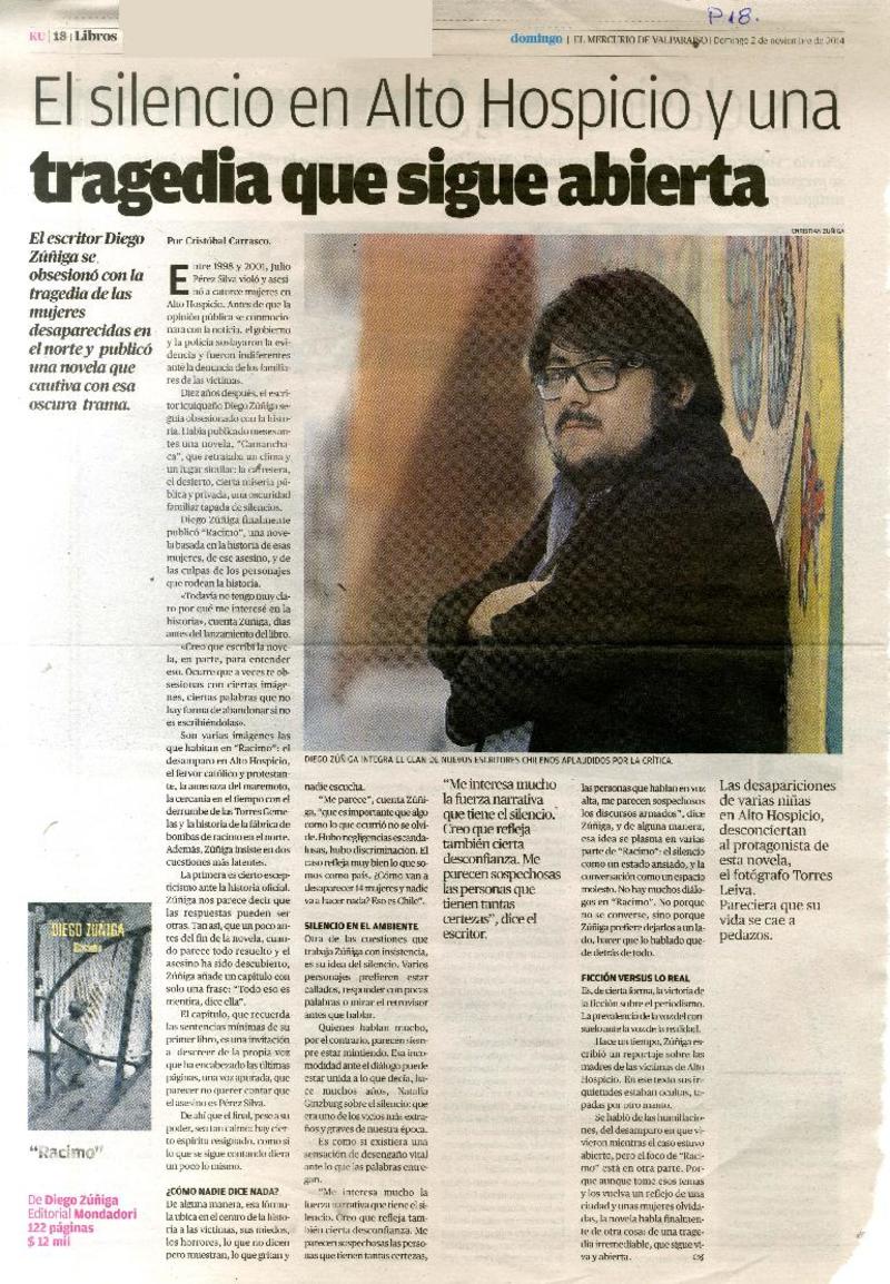 Diego Zúñiga : "no podemos obviar a Bolaño" [entrevista] [artículo] Antonio Díaz Oliva.