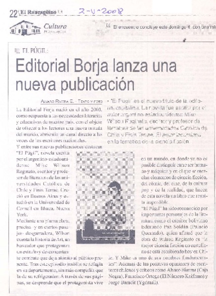 Editorial Borja lanza una nueva publicación [artículo] Alvaro Rivera E.