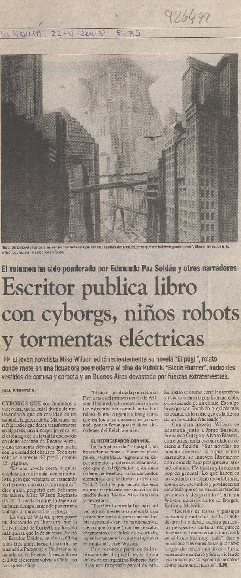 Escritor publica libro con cyborgs, niños robots y tormentas eléctricas [artículo] Juan Podestá B.