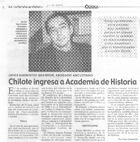 Chilote ingresa a academia de Historia [artículo] Sara Curumilla