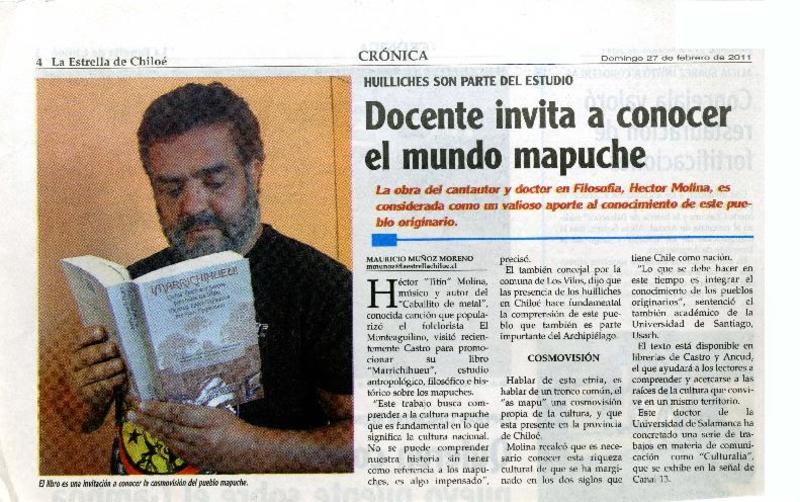 Docente invita a conocer el mundo mapuche [artículo] Mauricio Muñoz Moreno.