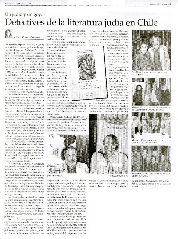 Detectives de la literatura judía en Chile [artículo] Joyce Ventura Nudman.