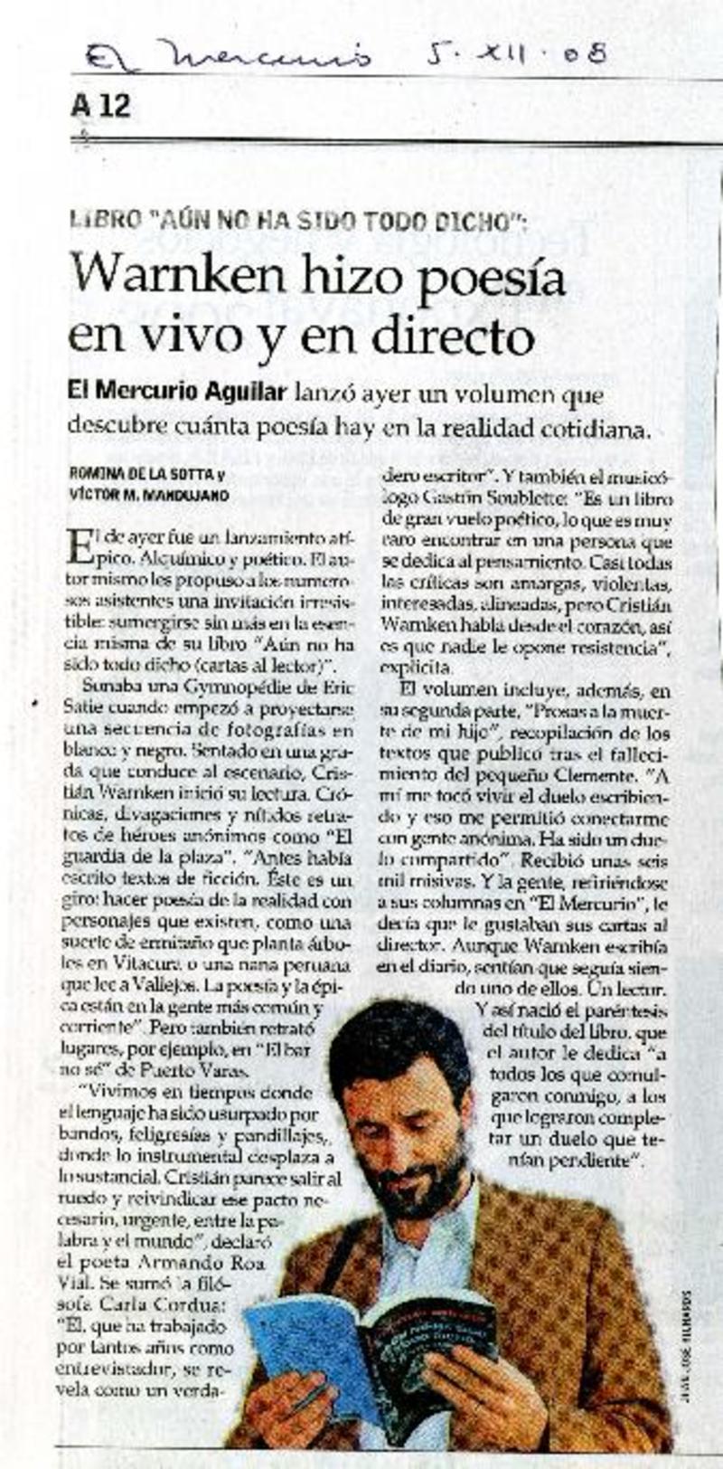 Warnken hizo poesía en vivo y en directo [artículo] Romina de la Sotta y Víctor M. Mandujano.