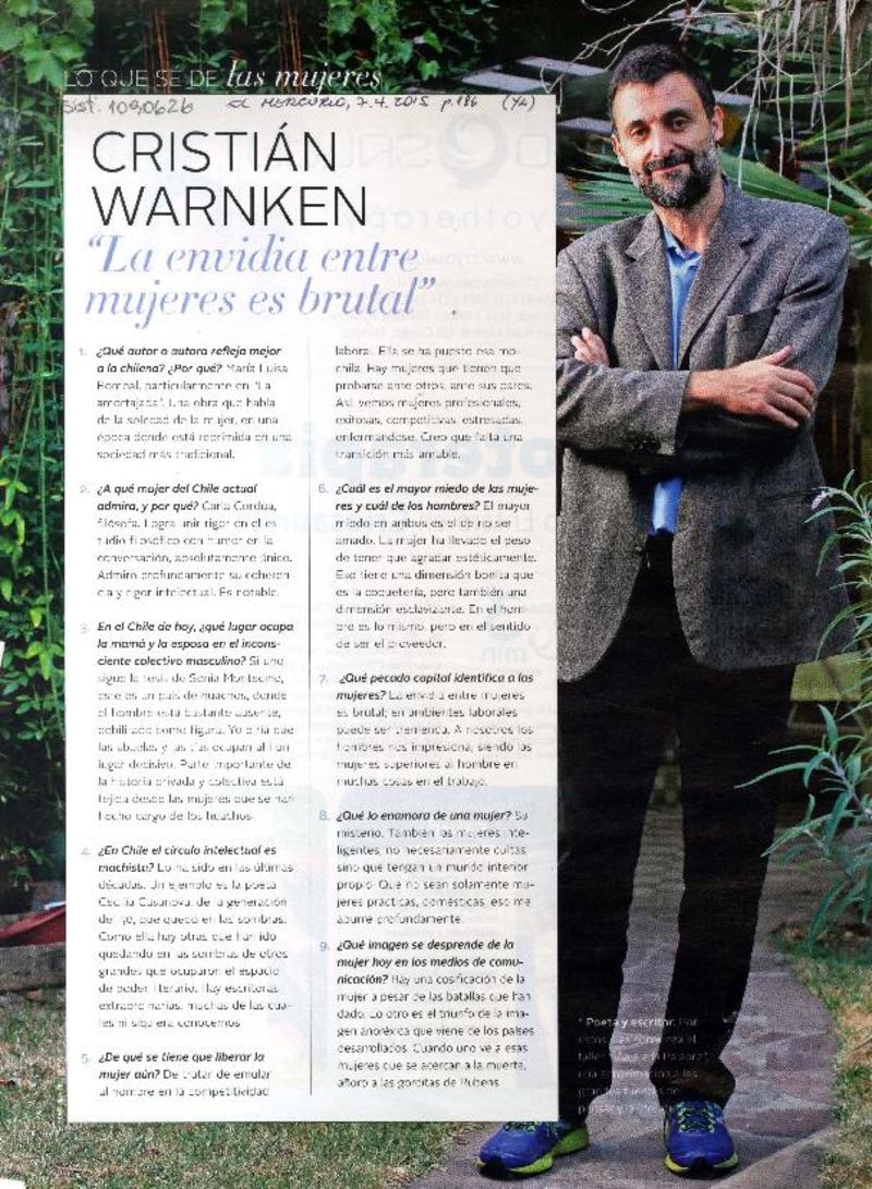 Cristián Warken "La envidia entre mujeres es brutal" [entrevista]. [artículo]