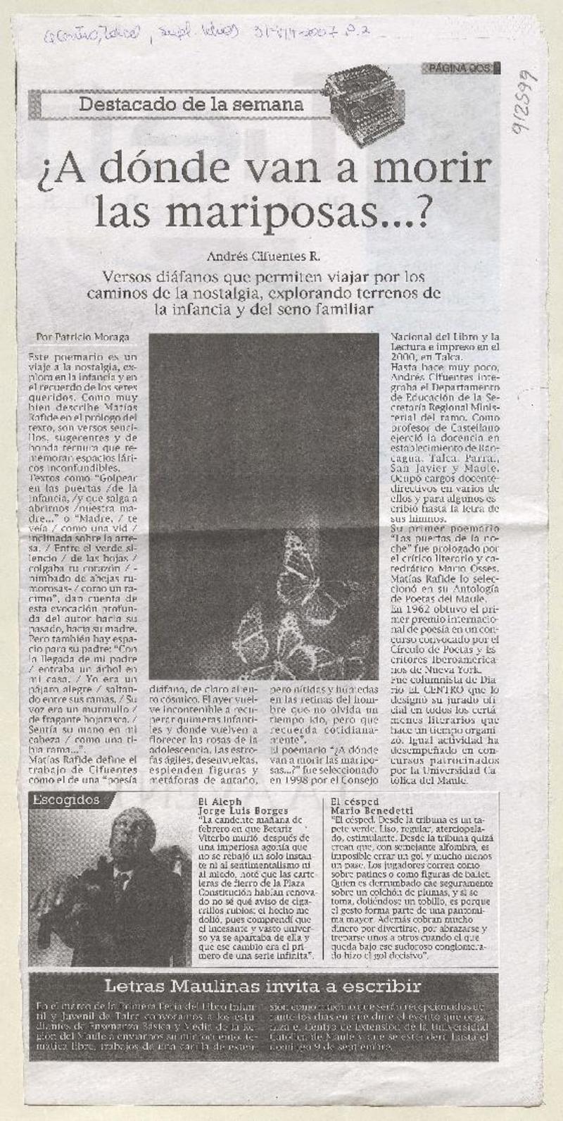 Autores chilenos - Cifuentes R., Andrés - ¿Adónde van a morir las mariposas?