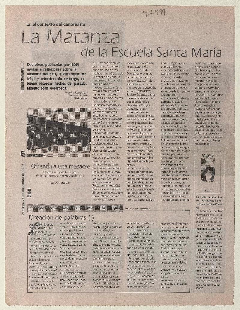 La Matanza de la Escuela Santa María [artículo] Javiera Fuentes Durán.
