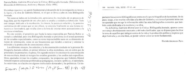 Gabriela Mistral ante la crítica [artículo] Haydée Ahumada Peña