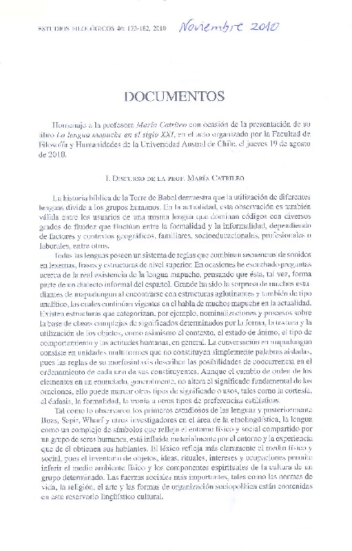 Discurso de la prof. Maía Catrileo [artículo] María Catrileo.