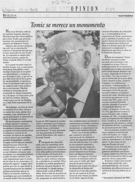 Se publicó libro de Radomiro Tomic [artículo].