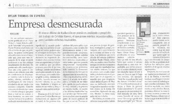Autores chilenos - Thomas, Dylan - Autores ingleses - Poemas - Barros, Cristián