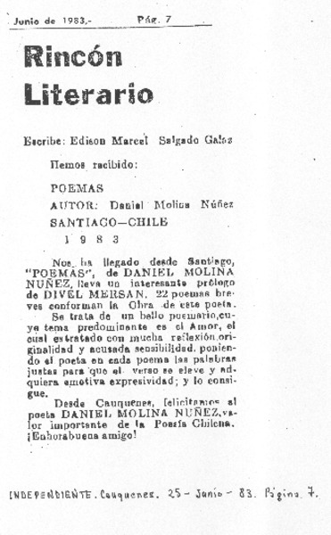 Autores chilenos - Molina Nuñez, Daniel - Poemas