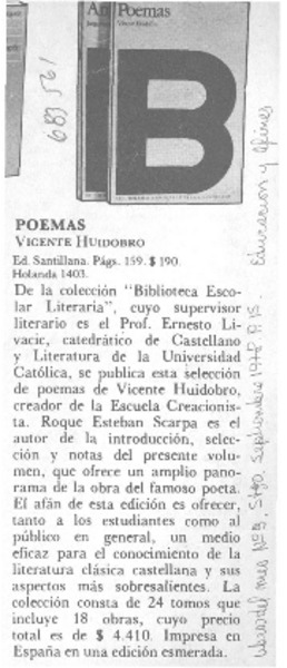 Autores chilenos - Parra, Nicanor - Poemas - Trejo, Guillermo - Poemas y antipoemas - Traverso, Soledad - ¿Quién es quién en las letras chilenas?
