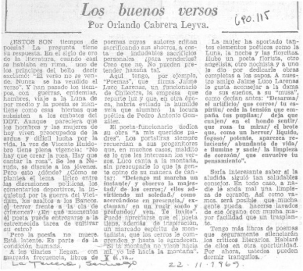 Los buenos versos [artículo] Orlando Cabrera Leyva.