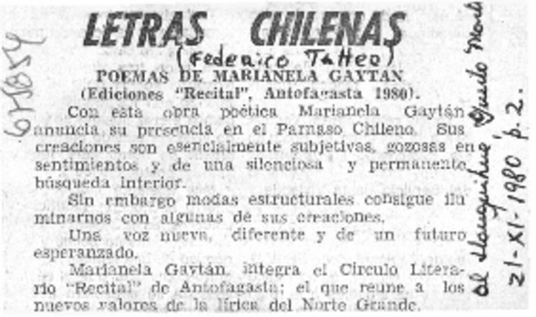 Poemas de Marianela Gaytán [artículo] Federico Tatter.