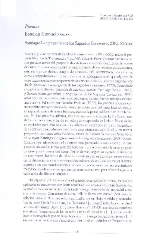 Poemas : Santiago, Congregación de los Sagrados Corazones. [artículo] Roberto Onell H.