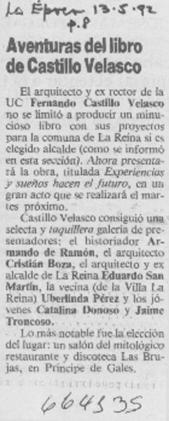 Aventuras del libro de Castillo Velasco. [artículo]