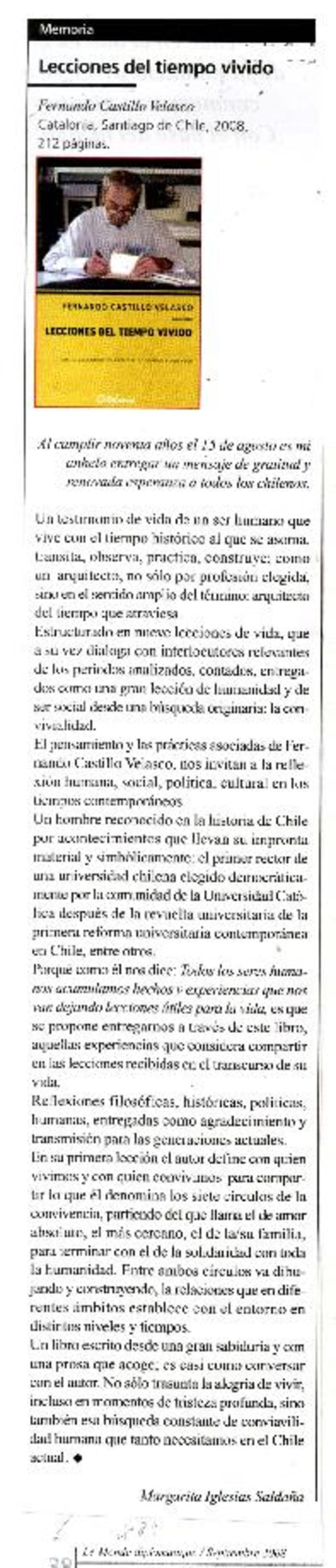Lecciones del tiempo vivido [artículo] Margarita Iglesias Saldaña.