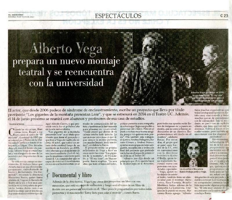 Alberto Vega prepara un nuevo montaje teatral y se reencuentra con la universidad [artículo] Eduardo Miranda.