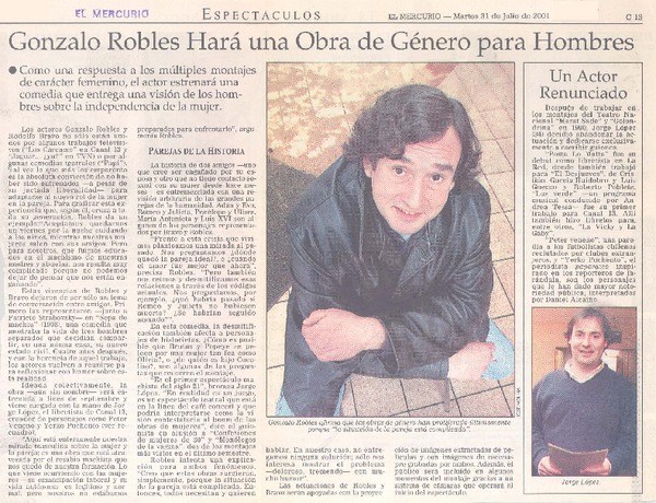 Gonzalo Robles hará una obra de género para hombres [artículo]