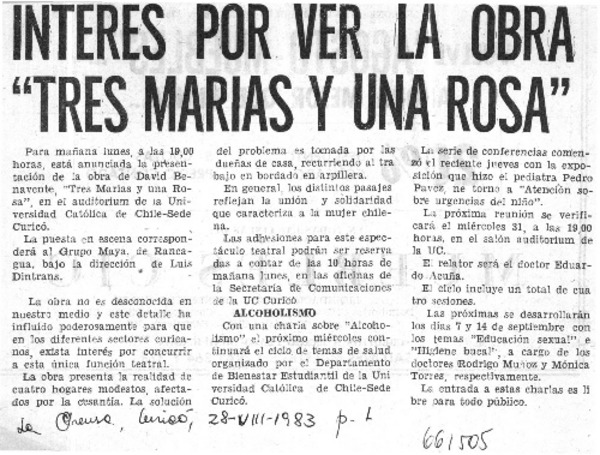 Interés por ver la obra "Tres Marías y una Rosa" [artículo]