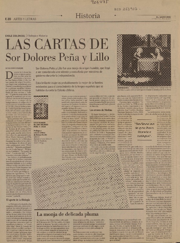 Espistolario de Sor Dolores Peña y Lillo [artículo] Carolina A. Navarrete.