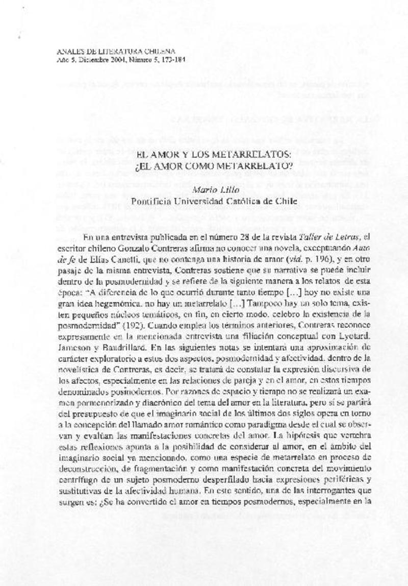 El amor y los metarrelatos [artículo] Mario Lillo.