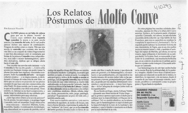 Los relatos póstumos de Adolfo Couve [artículo] Ignacio Valente