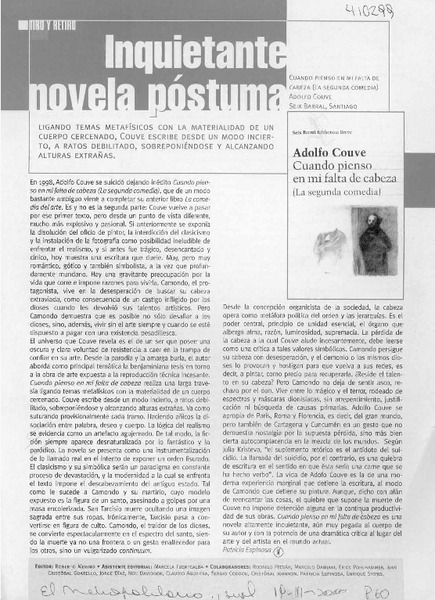 Adolfo Couve, Cuando pienso en mi falta de cabeza (La segunda comedia): "Una mediocre réplica de lo auténtico" [artículo]Marcia Martínez Carvajal.