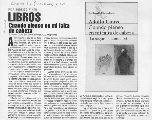 Autores chilenos - Couve, Adolfo - Comedia de arte - Cuando pienso en mi falta de cabeza