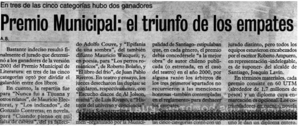 Premio municipal: el triunfo de los empates [artículo] A. B.
