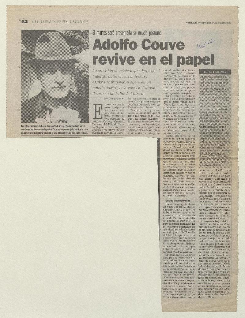 Adolfo Couve revive en el papel [artículo] Melanie Jösch K.