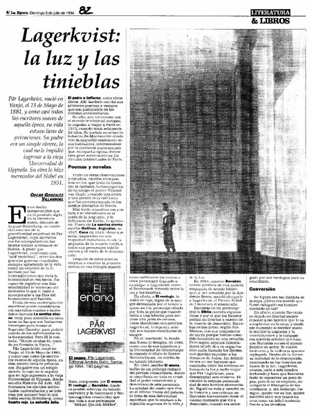 Lagerkvist, la luz y las tinieblas [artículo] Oscar González Villarroel.