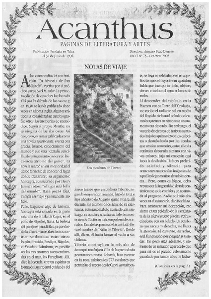Notas de viaje [artículo] Amparo Pozo Donoso.