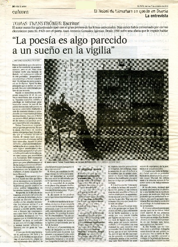 "La poesía es algo parecido a un sueño en la vigilia" (entrevista) [artículo] J. Antonio González Iglesias.