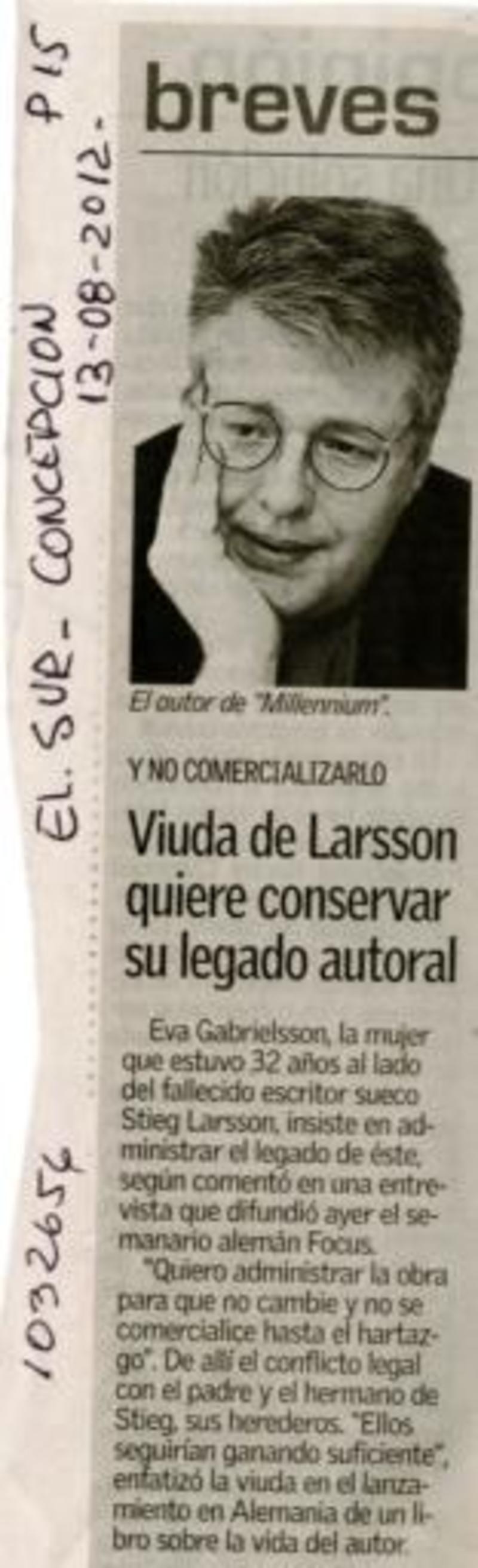 Viuda de Larsson quiere conservar su legado autoral [artículo]
