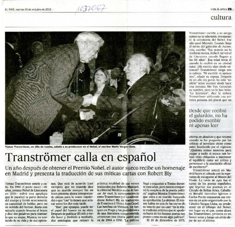 Entrevistas - Tranströmer, Tomas - Autores suecos