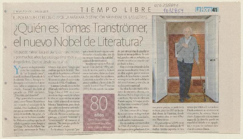¿Quién es Tomas Tranströmer, el nuevo Nobel de literatura? [artículo]