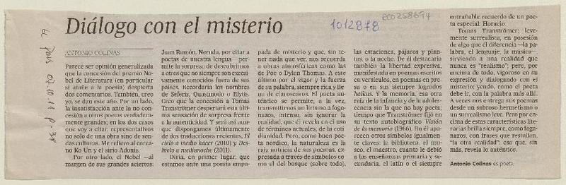 Diálogo con el misterio [artículo] Antonio Colinas.