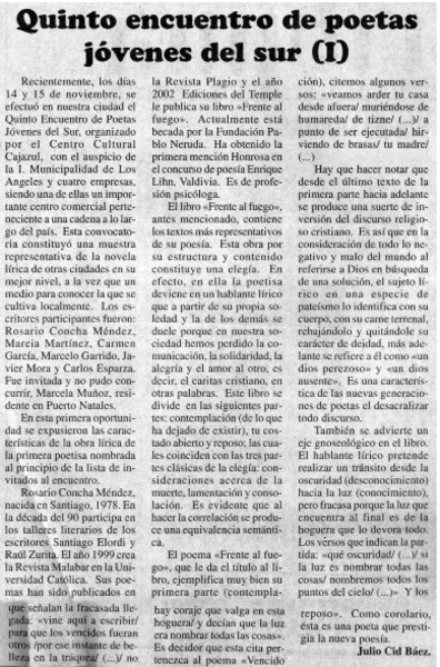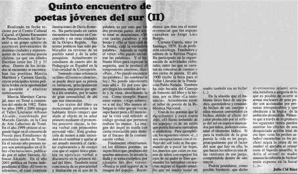 Quinto encuentro de poetas jóvenes del sur (II) [artículo] Julio Cid Báez.