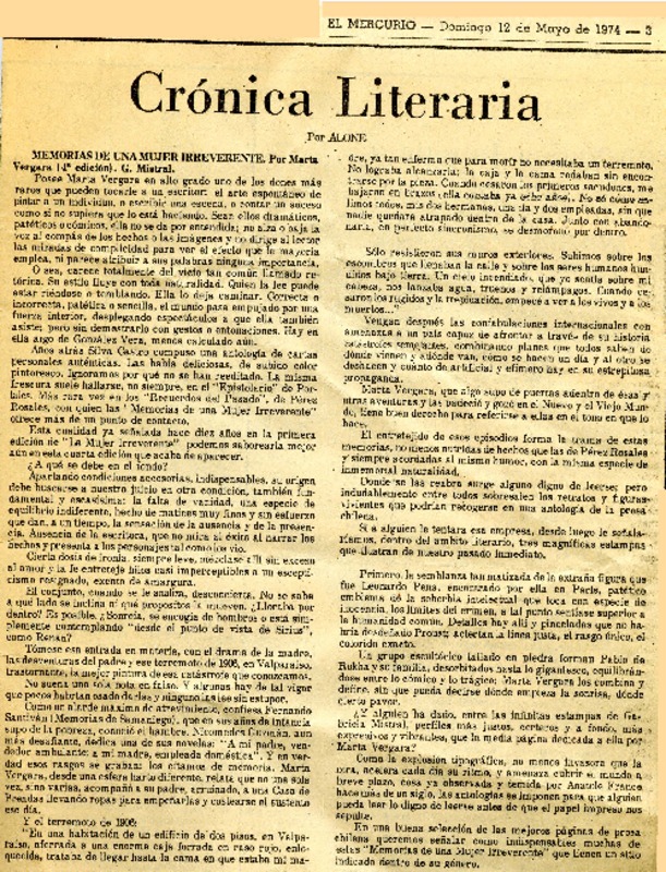 Marta Vergara, una vida irreverente en el siglo XX [artículo] Marilú Ortiz de Rozas.