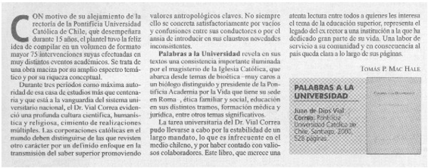 Palabras a la universidad [artículo] Tomás P. Mac Hale.