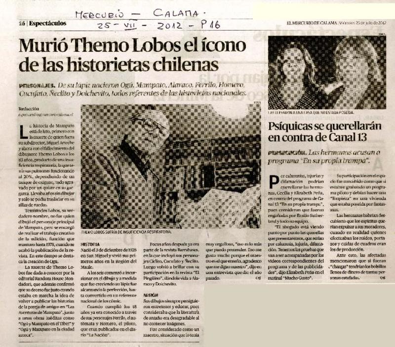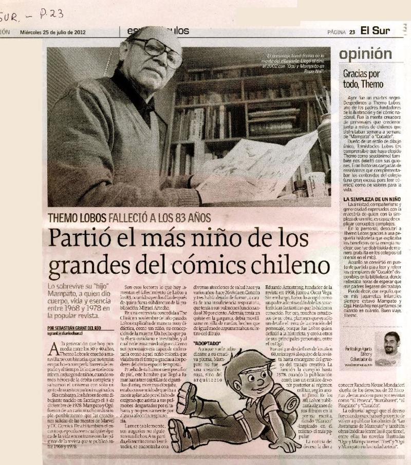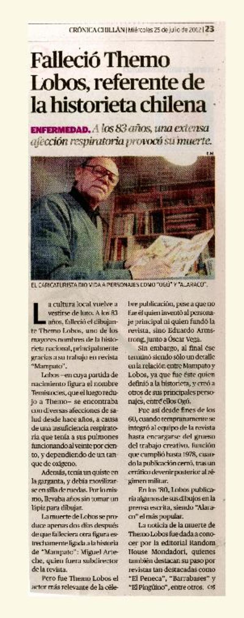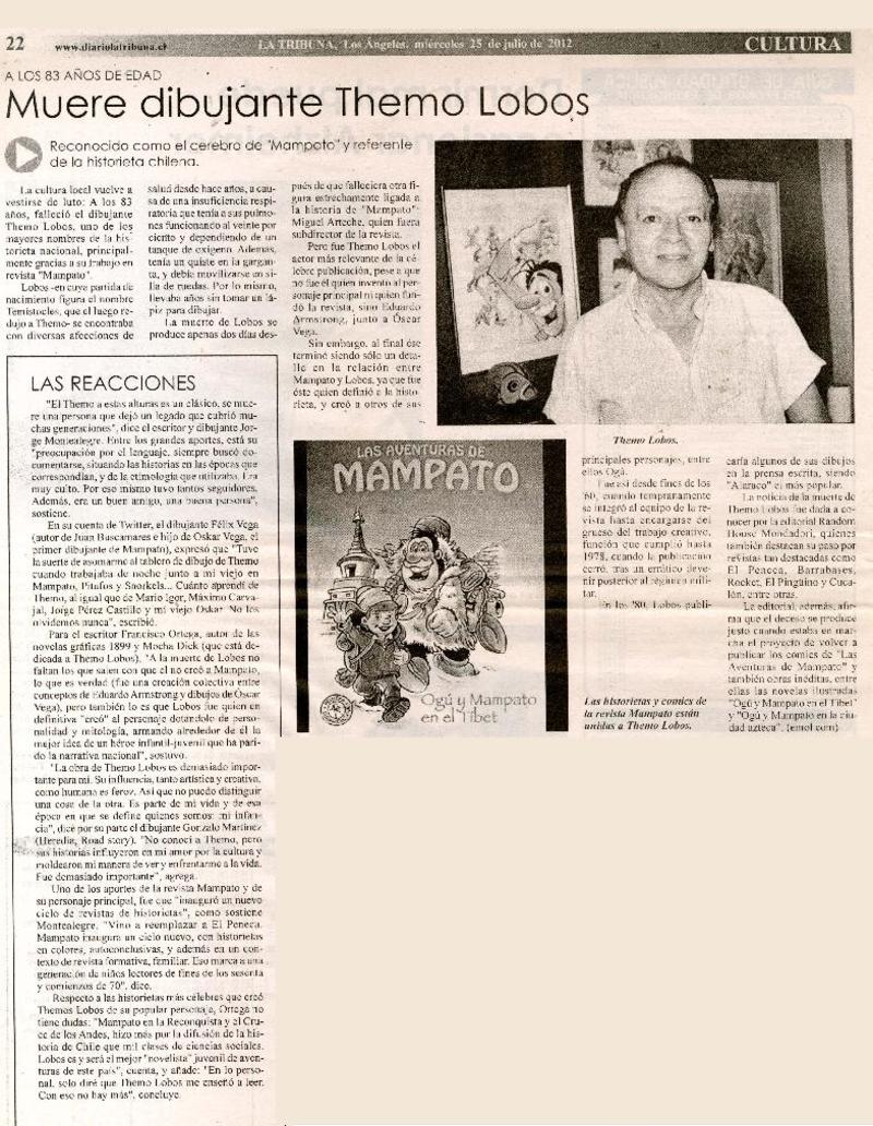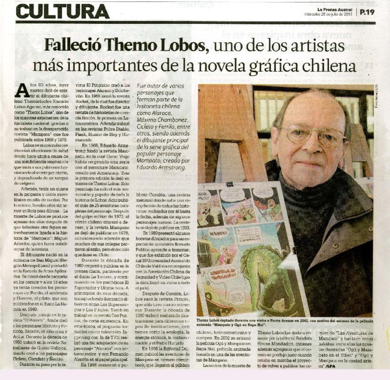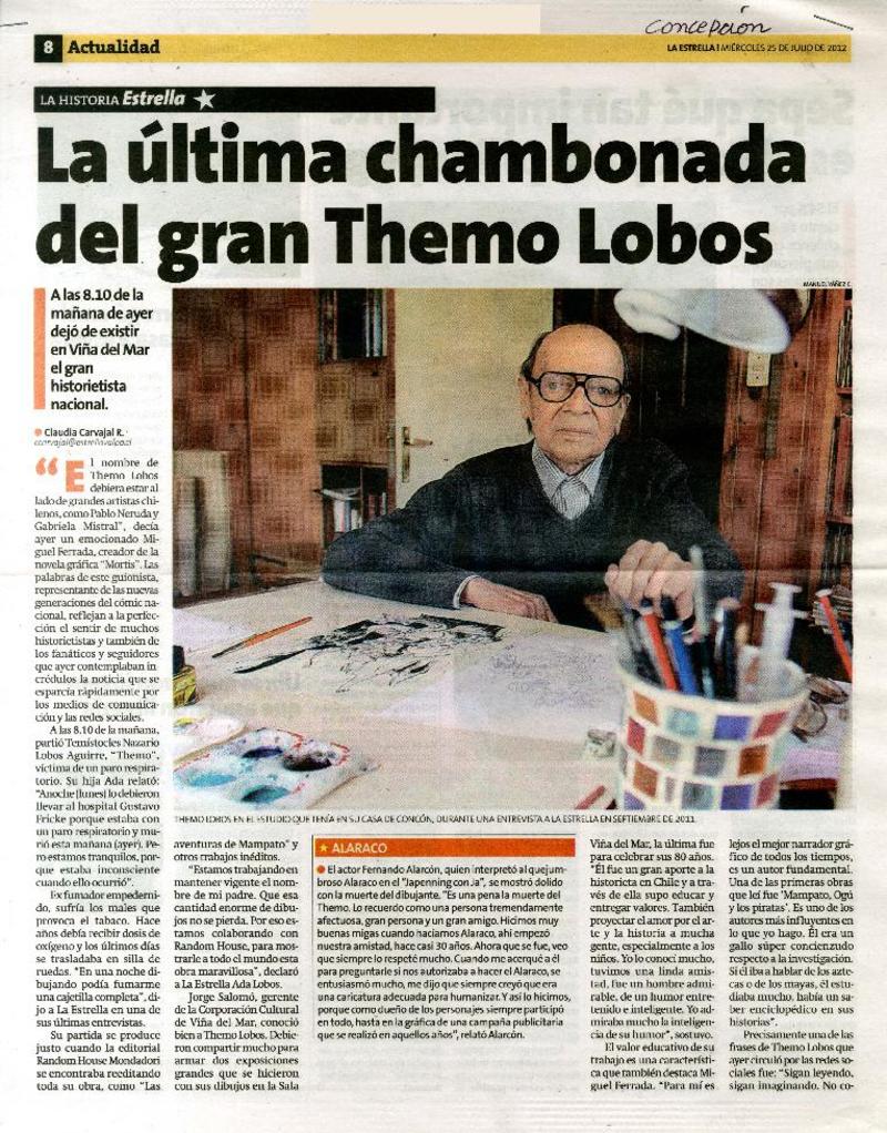 Murió Themo Lobos el ícono de las historietas chilenas. [artículo]
