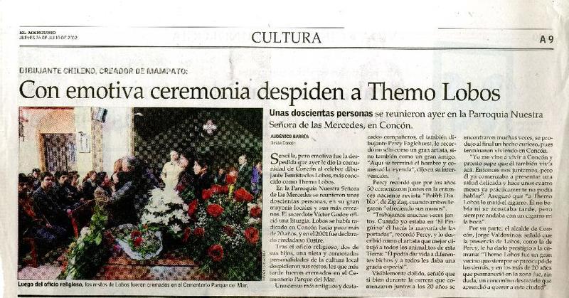 Con emotiva ceremonia despiden a Themo Lobos [artículo] Audénico Barría.