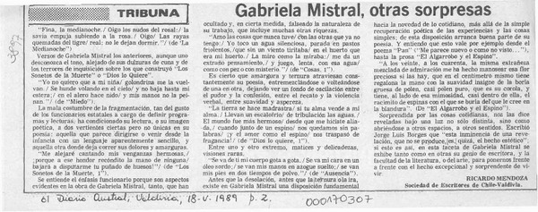 Gabriela Mistral, otras sorpresas [artículo] Ricardo Mendoza.