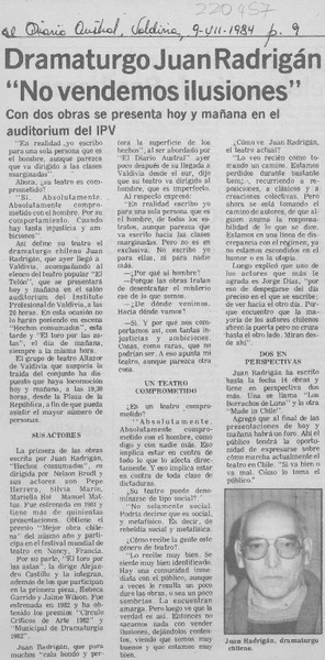 Dramaturgo Juan Radrigán, "No vendemos ilusiones" [artículo].