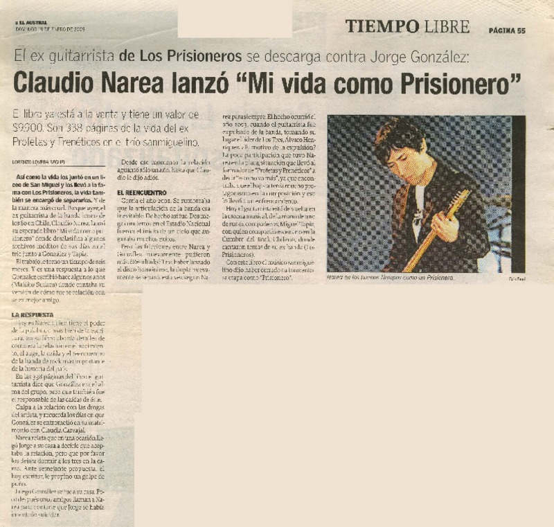 Claudio Narea lanzó "mi vida como prisionero" [artículo] Lorenzo Lovera Seguel.