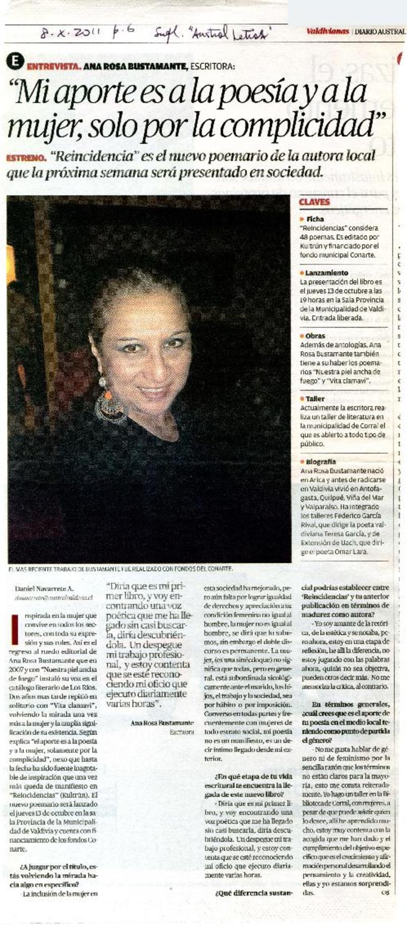 Autoras chilenas - Entrevistas - Bustamante, Ana Rosa - Reincidencia