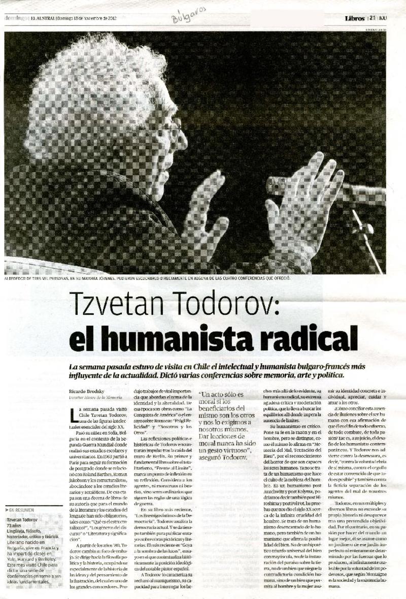 Tzvetan Todorov: el humanista radical [artículo] Ricardo Brodsky.