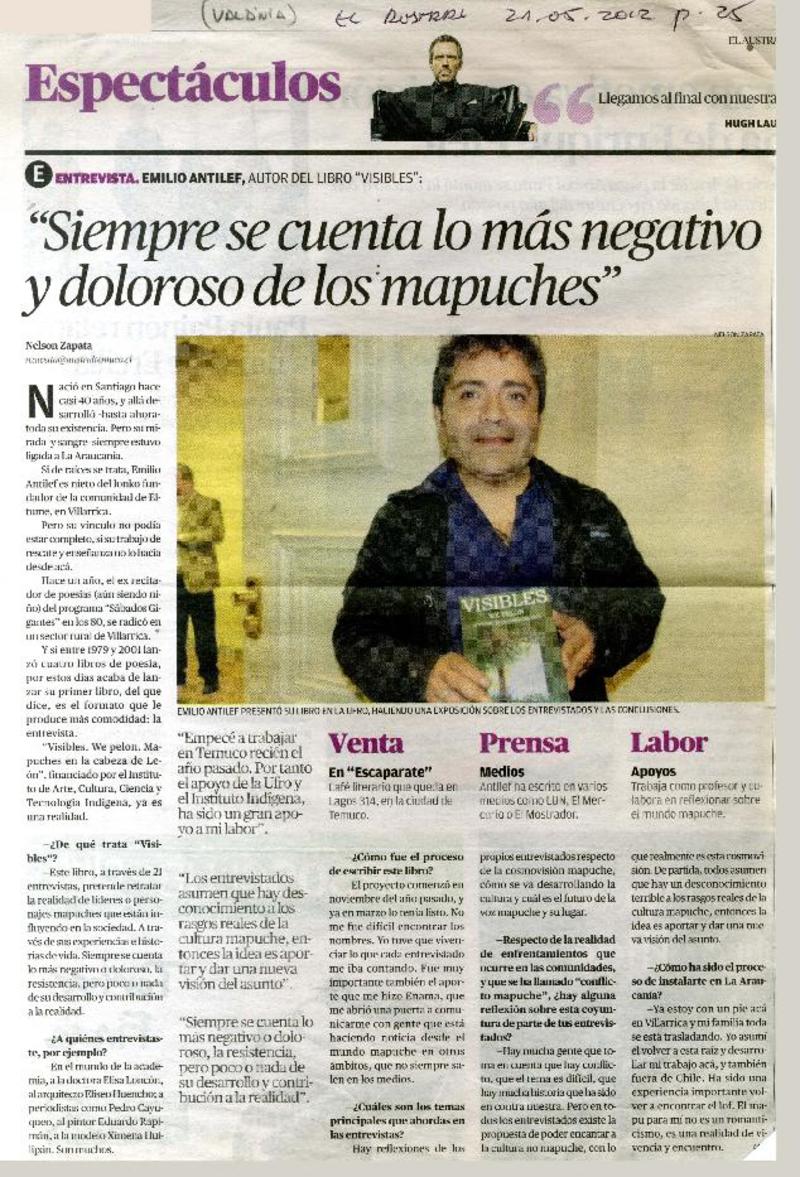 "Siempre se cuenta lo más negativo y doloroso de los mapuches" [artículo] Nelson Zapata.