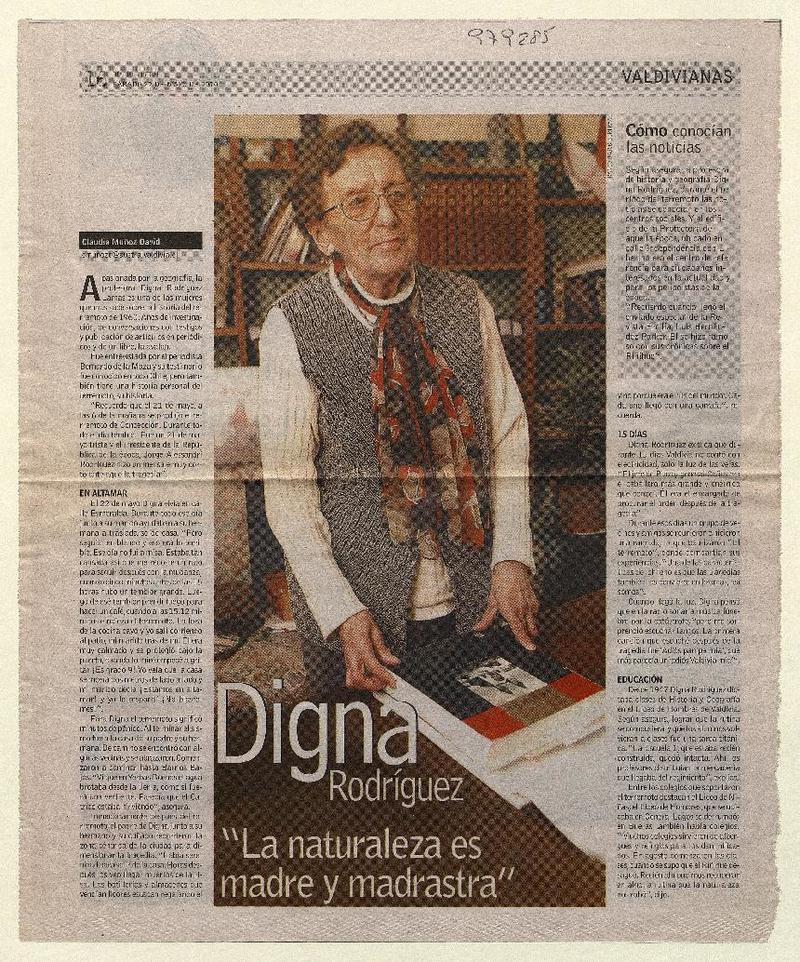"La naturaleza es madre y madrastra" (entrevista) [artículo] Claudia Muñoz David.